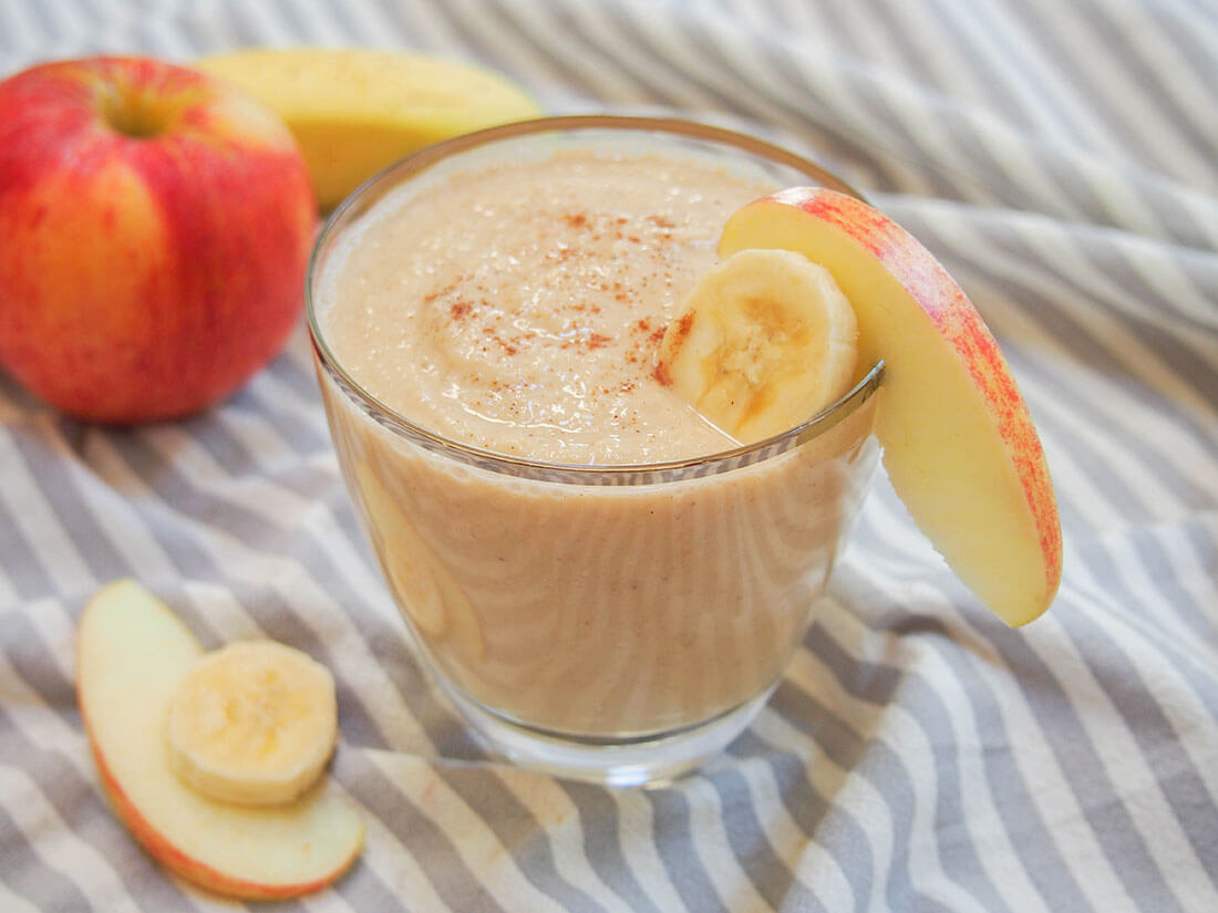 - Blend until smooth puree. Pour prepared banana apple smoothie into a chilled serving glass and serve. It will turn brown after some period, so drink it immediately to get maximum nutrients.